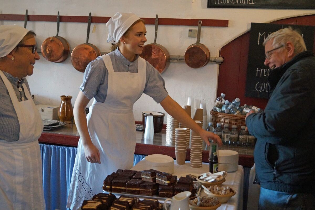 Herregårdskøkkenet er åbent med salg af kaffe og kage.